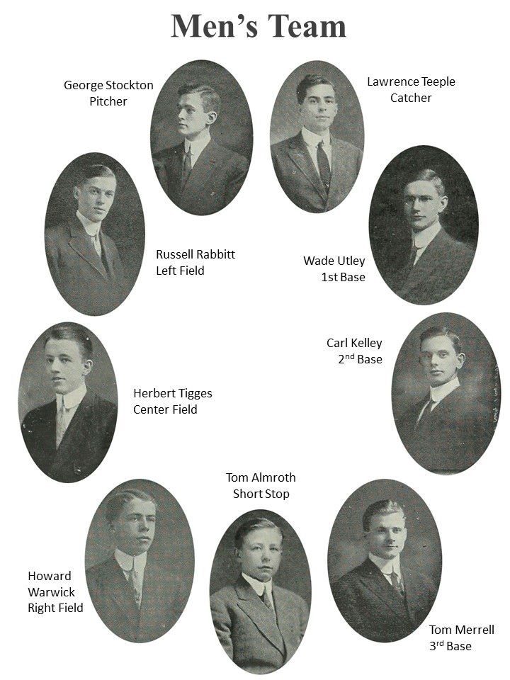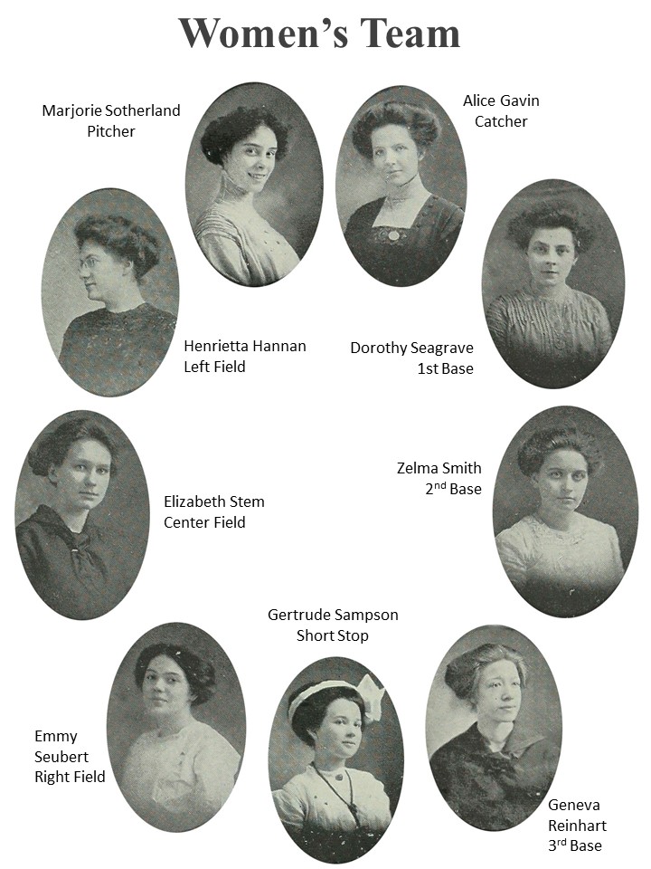 It is fitting that Edwin chose Miss Ritchie as the game’s umpire. Born in 1856 in Grafton, Ohio, she was both the daughter and sister of judges. At the time of her death in 1927 she had spent more than 50 years as an educator in Toledo. By then she was known as the “Grand Old Lady of Scott High School,” but the beginning of her career was made evident in 1873 when she filled in for a sick teacher three months prior to her graduation from Toledo Central High School. She taught most if not all of Toledo’s prominent late 19th and early 20th century business people. Full page photos of her, like the one included, grace most of the school’s The Almanac yearbooks, where she was known for her toughness, fairness, and heart of gold. When Scott High School opened in 1913, she became a member of their faculty and is credited with developing their extensive library.