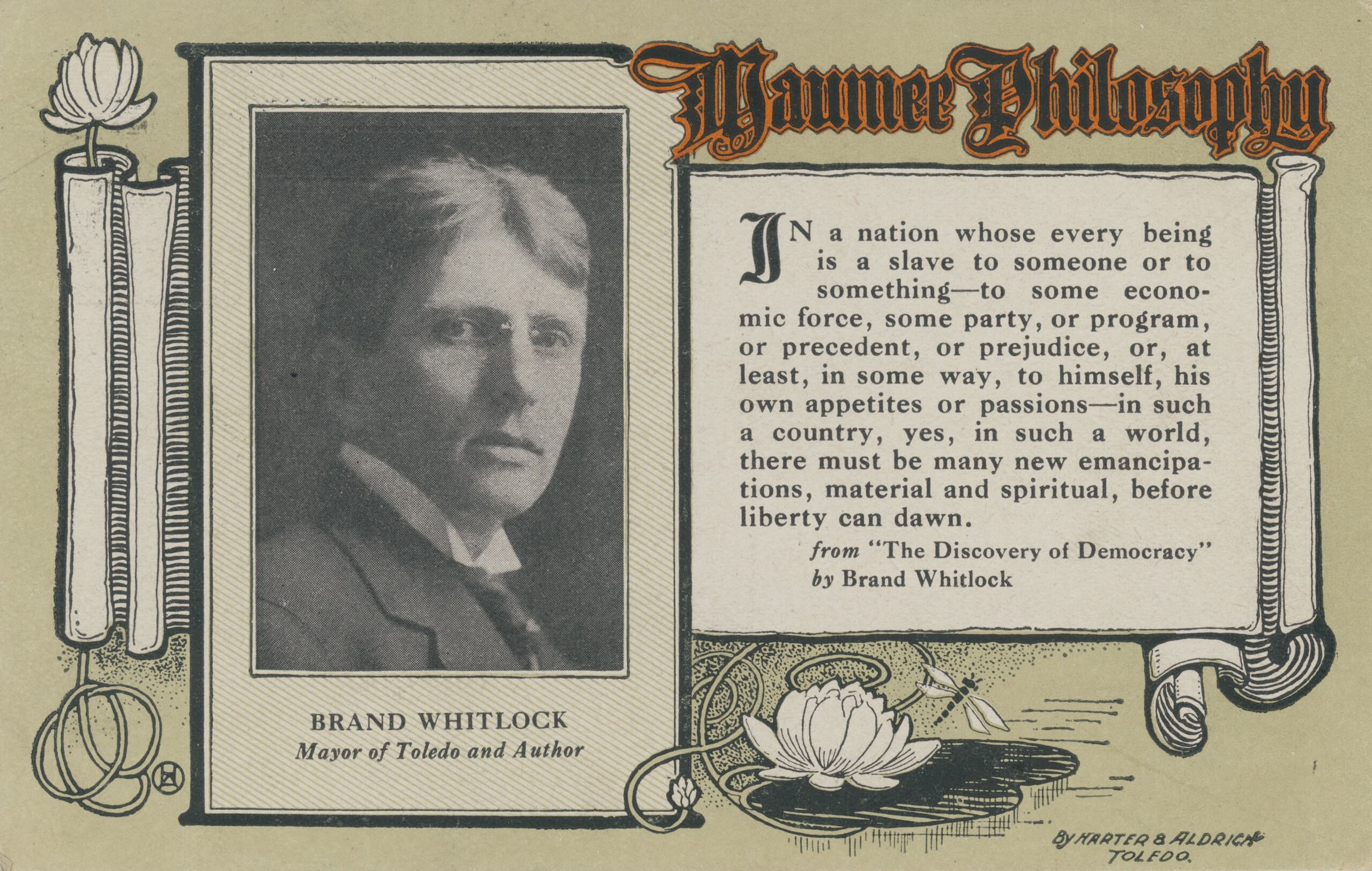 Although Edwin didn’t name Brand Whitlock (1869-1934) specifically in his story, his inclusion fits perfectly with who our 33rd or 34th (depending on how you count them) 1911 mayor was. Although this 1909 postcard gives a hint of whether Mayor Whitlock may or may not have endorsed women’s suffrage, you still need to read the story at the link below to fully comprehend the outcome of the game!