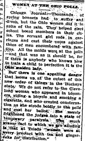 In 1888, Fannie Judson Farrar became the first woman to own and ride a bicycle in Toledo. While owning a bicycle may seem like a common rite of passage today, in the late 19th century and early 20th century it was considered a symbol of the “New Woman.” The “New Woman” was young, active in sports, interested in pursuing career, “masculine in dress,” and… almost always riding a bicycle. Bicycles were a relatively inexpensive mode of travel that promised freedom to women who had been accustomed to relying on men for transportation. For the first time in modern history, women had more control over where they traveled and when.